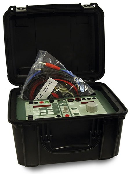 The PTE-100-C and the Plus and Pro versions were designed as powerful, rugged and flexible tools for the wide diversity of maintenance jobs in substations and transformation centers. Both feature a 1000-VA voltage regulator and highly accurate digital instruments that provide the quality and effectiveness required for in-field testing of power-demanding electromechanical relays, as well as static, digital and the most sophisticated multi-functional numerical relays where precision and ease of use are essential. Digital chronometer, auto-range ammeter and voltmeter, as well as four adjustable current output taps, AC and DC voltage outputs, auxiliary DC source, automatic overload an thermal protections, PC communications and a comprehensive set of external measurement functions are just a few of the most outstanding features that we have packaged for you in a compact, robust and lightweight piece of equipment that is being used by industry professionals in more than 55 countries worldwide.