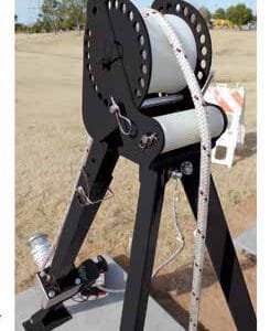The Southwire P6-T02 Tripod easily attaches to the Maxis M6K cable puller to make underground wire pulls simple and easy. It helps when pulling from transformer pads, vaults, and meter bases.