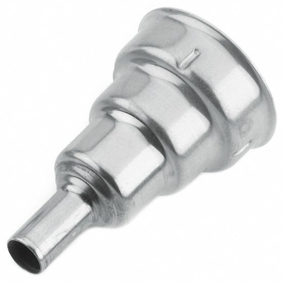 Reducer Nozzles provide a concentrated, aimed stream of hot air for precision welding or soldering, and may be used as a base for specialized attachments. 9mm Reduction Nozzle use as base for attachments below (3/8 in.)