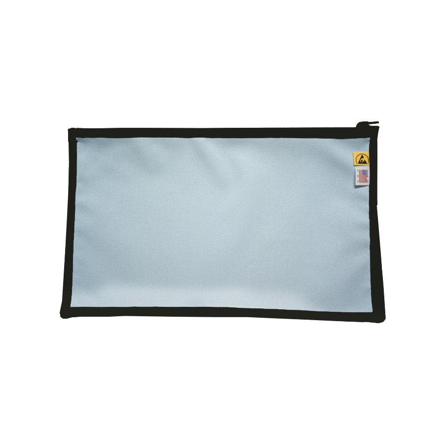 This ESD-safe tool bag is made from conductive blue/black vinyl with blue on the outside. It comes with a zipper across the top and the ESD logo.