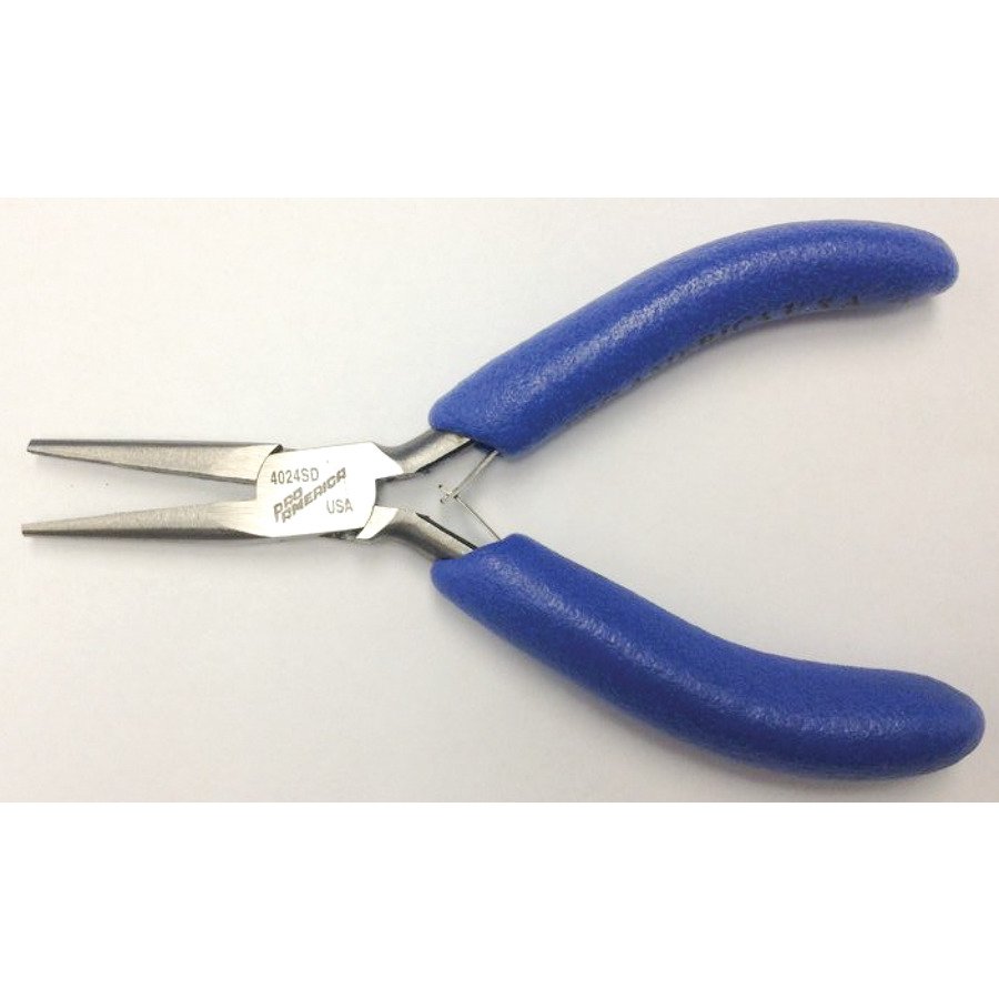 The Techni-Pro 758PL024 is 4.75″ long with 1 1/8″ scored jaws and ESD-safe long nose pliers without a cutter. This product was hot drop forged from the finest steel, heat treated, hand sharpened, and matched in pairs for maximum durability. It has blue static-dissipative cushion grips and double leaf springs.