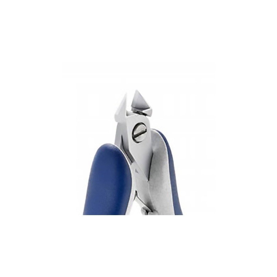 The 351TX is a high-precision cutter belonging to the tungsten carbide cutters family. This type of geometry eases the tip access in the working area, while the 351TX head dimensions support the cut. The short blade length transmits all the operator’s cutting strength. The flush cutting edge is suitable to perform clean cuts on the hardest wires. The 351TX is equipped with an ESD Ergo-tek handle which allows an excellent grip, suitable for environments and components susceptible to electrostatic discharges. The tungsten carbide insert blades are 82HRC hardness.