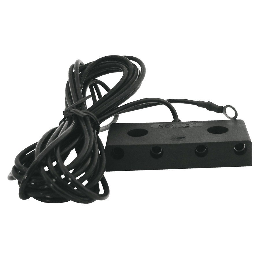 The Techni-Pro 758ST714 is a workstation ground cord with four banana jack receptacles for secure ground connections for wrist straps. The low-profile, molded head has a built-in 10 mm snap for secure worksurface attachment. A 15-foot black ground cord terminates with a standard 1/8′′ (#10) ring terminal for a solid connection to ground.