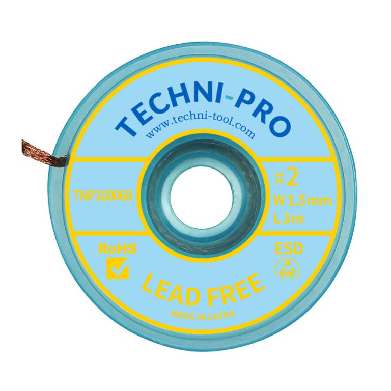 The Techni-Pro TNP100068 is Our braids offer par excellence performance in desoldering technology. Each Flux type is designed for today’s heat sensitive electronic components using lighter mass, pure copper braid construction that allows for better thermal conductivity, even in extreme temperatures. These products respond faster than conventional desoldering braids thereby minimizing overheating and preventing PCB damage.