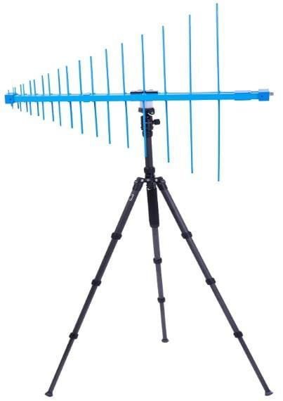 The TBMA3 from TekBox is an average sized log-periodic antenna. The radiating elements and supporting booms are made from powder coated aluminum alloy. It is equipped with a standard female N-connector and comes with an antenna bracket and a mounting adapter. A standard ¼” thread on the bottom of the mounting adapter makes it easy to connect it to most standard tripods.