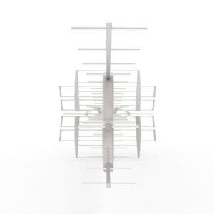 The DAT BOSS LR Mix is able to receive very weak distant signals while at the same time avoiding overload caused by very strong signals. This is a very high gain directional antenna designed to offer stable and high quality reception of UHF and high VHF signals only (RF channels 7-36) in challenging long-range and fringe receiving scenarios despite continuous changes in weather and transmitting conditions thanks to its exclusive and intelligent built-in TForce amplifier. The Televes proprietary stacked triple boom design ensures market leading raw gain while still maintaining a compact and install friendly form factor. No additional preamplifier purchase is required as the antenna includes a best-in-class very low-noise TForce preamplifier built in right at the dipole with automatic gain control, plus FM and cellphone signal filtering adapting to any installation situation.