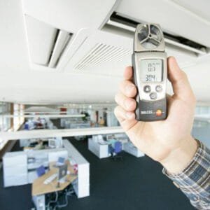 In addition to air flow velocity and air temperature, the testo 410-2 also measures air humidity. This allows air conditions to be tested reliably. In addition to this, dewpoint and wet bulb are calculated and displayed fully automatically.
