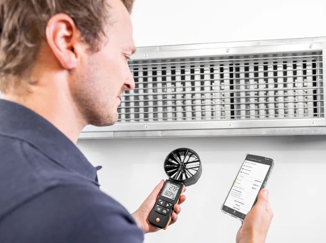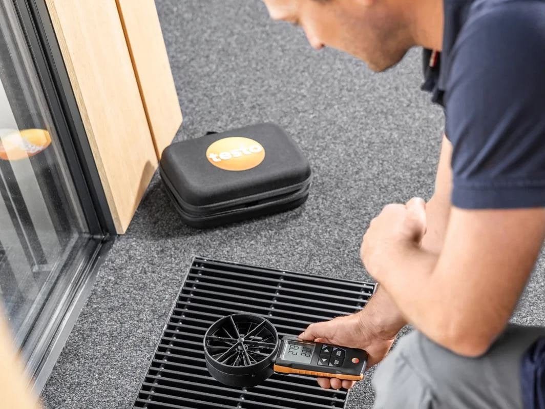 This allows balanced commercial and residential ventilation systems to be adjusted especially efficiently – including quick documentation with the testo Smart App. In addition, the App not only supports you in configuring the measuring instrument and takes over display, storage and documentation of the measured values – it also turns your smartphone into a second display.