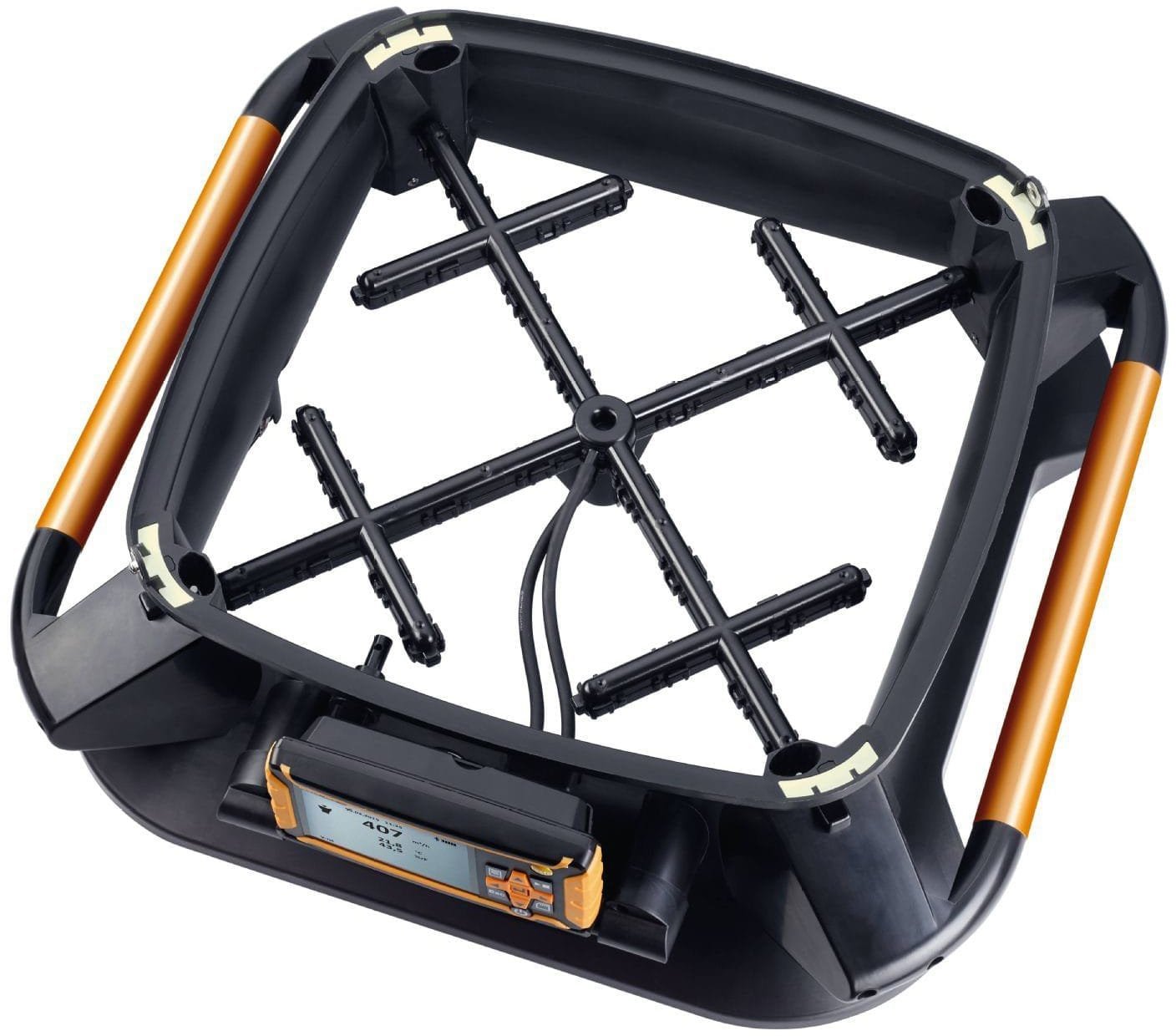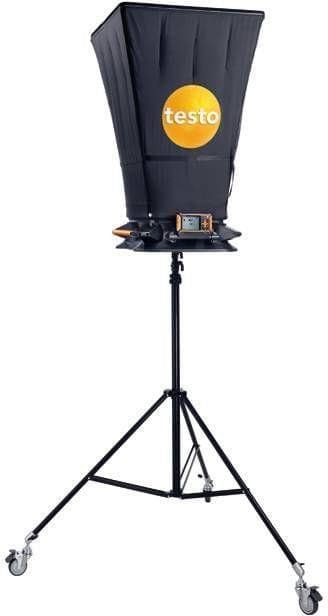The new testo 420 flow hood system is a lightweight, accurate and convenient solution for balancing volume flow at registers and returns. At turbulent outlets, the patented flow straighteners significantly improve measurement accuracy & stability, save time and eliminate the uncertainty of measuring turbulent outlet ducts. Positioning is especially easy with its ergonomic handles, and low weight of less than 6.4 lbs. The optional tripod stand provides convenient handling when testing in large buildings, or at greater heights. The testo 420 flow hood has a wide variety of optional interchangeable flow skirts in different sizes and configurations. The lightweight testo 420 is easy to setup and disassemble and comes in a convenient rolling case.