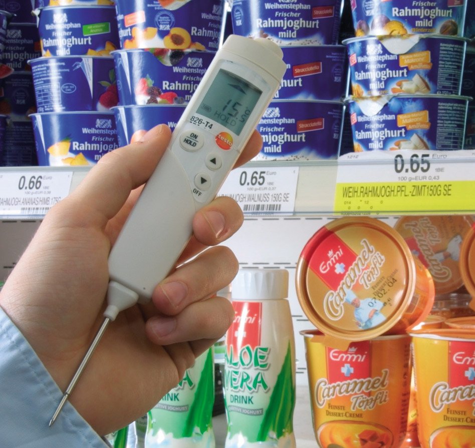 The testo 826-T4 penetration infrared thermometer allows for quick temperature scans, by means of infrared measurement, without damaging the products. If temperature limit values are exceeded, the permanently attached penetration probe can be used to take accurate core temperature measurements.