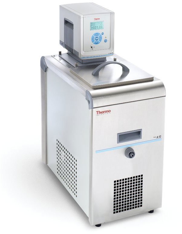 The Thermo Scientific A10B refrigerated bath features a large work area, enabling high throughput and workflow efficiency, with temperatures ranging from -10° to +100°C and maximum bath volume of 30 liters. Configure your refrigerated bath with a Thermo Scientific STANDARD or ADVANCED controller that meets your specific application needs.