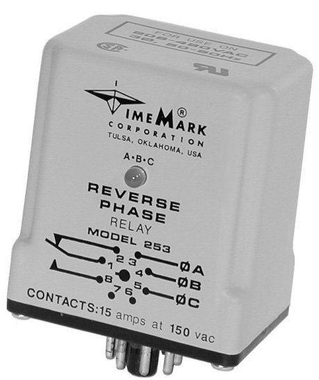 The Model 253 Reverse Phase Relay is a solid-state sensing device designed for installation in equipment using 3-phase power. This unit is used where it is desirable to have a contact closure indicating that the proper phase rotation sequence has been applied.