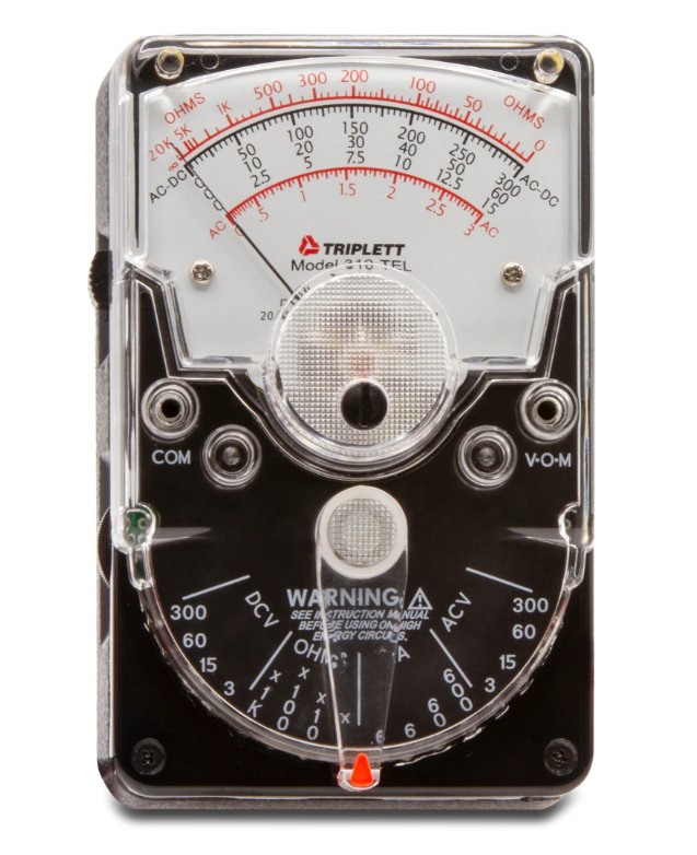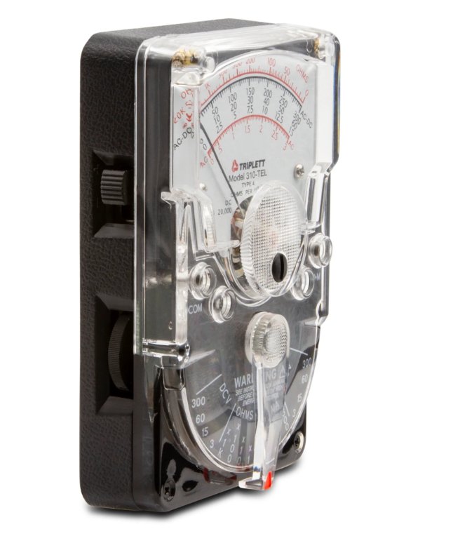 The Triplett Model 310-TEL is a hand-sized analog multimeter with all of the versatility and performance of larger, more expensive bench-size models. It offers a diode overload protection against damage to the meter movements caused by accidental overloads. A fuse is used to protect the RX1 range. The fuse and batteries can be easily replaced by removing the back cover. Small enough to be carried in your tool box, glove compartment, brief case, or shirt pocket, the Model 310 features 20,000 ohms per volts DC sensitivity and 5,000 ohms per volt AC. Versatility and readability have not been sacrificed in order to provide a portable VOM. This model has 16 different ranges that can be easily read on only 3 clearly defined scale areas and a polarity reversing switch. A single selector switch allows you to switch easily from range to range and function to function.