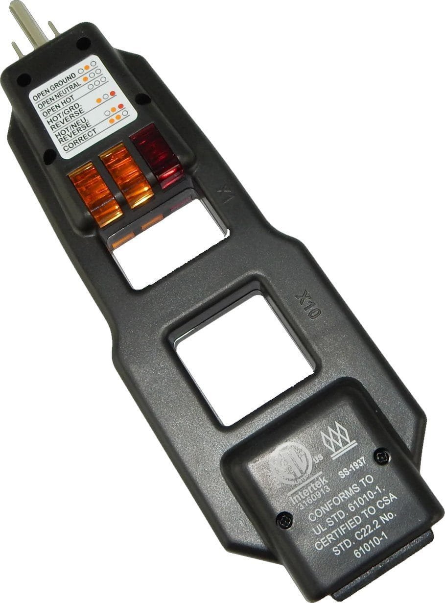 - Lights display 5 wiring faults: Open Ground, Open Neutral, Hot/Ground Reverse, Open Hot, Hot/Neutral Reverse