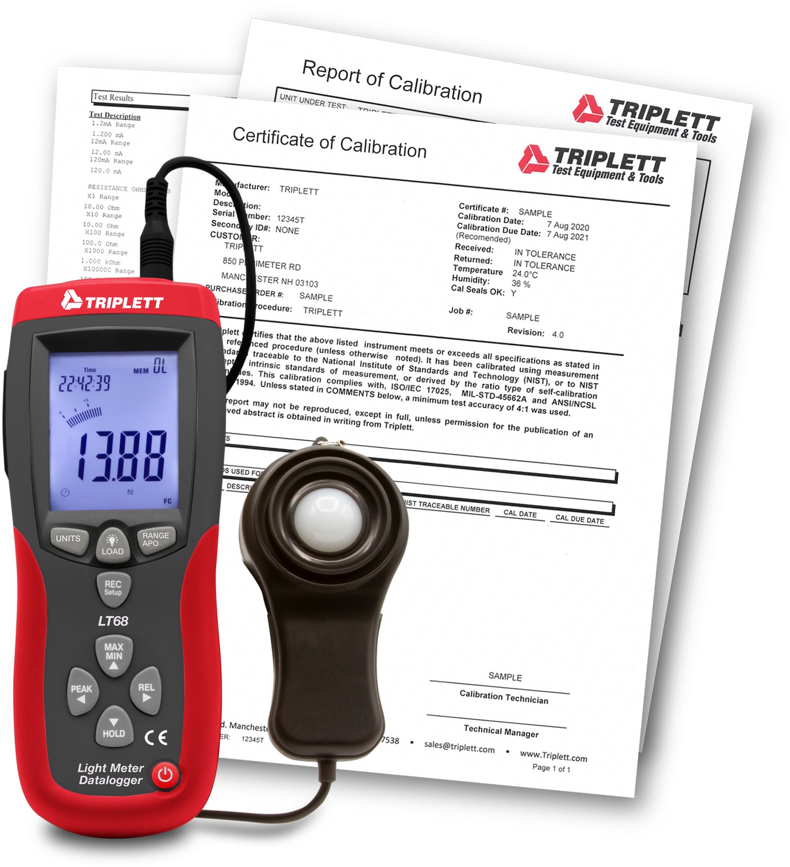 - Light Meter/Datalogger with Certificate of Traceability to NIST