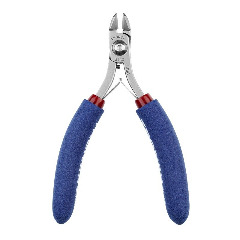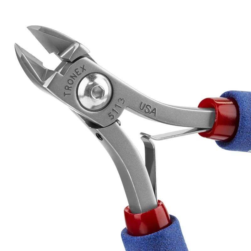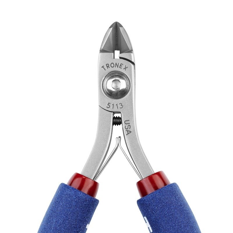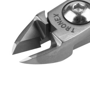 Tronex 5113 is a general purpose cutter that is both strong and versatile. Its Razor Flush cutting edges features no bevel on the cutter. This results in a sharp cut with virtually no raised surface on the cut lead and minimizes shock when cutting leads on components.