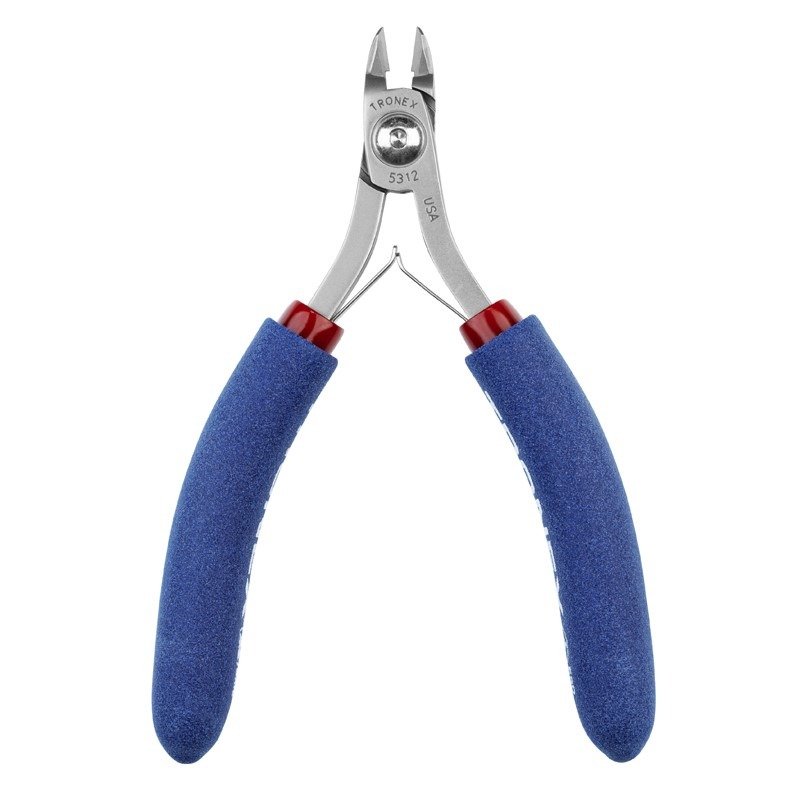 The Tronex 5312 is a Mini Oval Head Flush Cutter with longer, standard handles and flush cutting edges. It is used for fine-cutting work, such as with SMT or under a microscope.