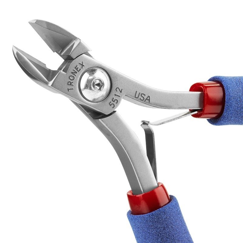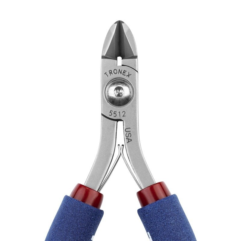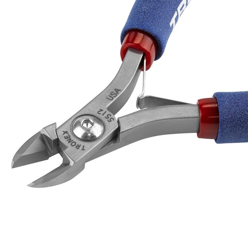 Flush cutters feature a very thin edge bevel on the cutter that leaves only an exceptionally small pinch in the middle of the end of the material being cut. Used in a wide range of electronics manufacturing applications where users are looking for a balance between longevity and precision.
