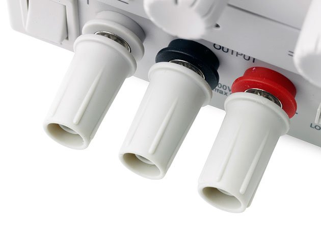 Power output terminals are duplicated on the rear panel for rack mount applications or other situations where rear connection is more appropriate.
