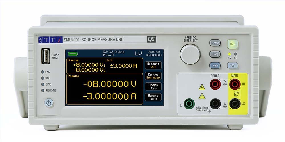 There are many sources, load, and measure operational modes to choose from, each one allows advanced user-settable configurations to be created based on the specifics of that mode. 8 EasySet pre-sets are also included to allow instant use of the SMU in the simplest form, including Power Supply, Current Source, Load, Voltmeter, Ammeter, Ohmmeter, Insulation resistance meter, and Leakage current meter. These setups form a convenient base from which settings can be edited using the manual setup mode configuration.