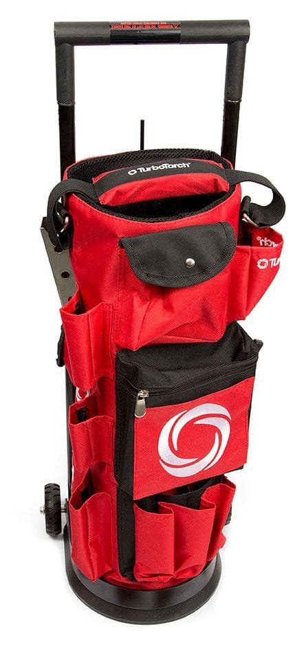 - Roller Tote Outfit has telescoping handle, storage pockets, hot tip and gas hose storage
