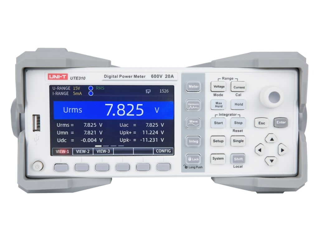 The UNI-T UTE310 is a high-accuracy digital power meter offering top-tier performance for measuring voltage, current, and power. With a 4.3-inch full-color display and advanced waveform visualization, this tool provides a streamlined user experience. The wide measurement range (25µA–20A / 75mV–600V) and broad 300kHz bandwidth make the UTE310 perfect for R&D, testing, and production environments.