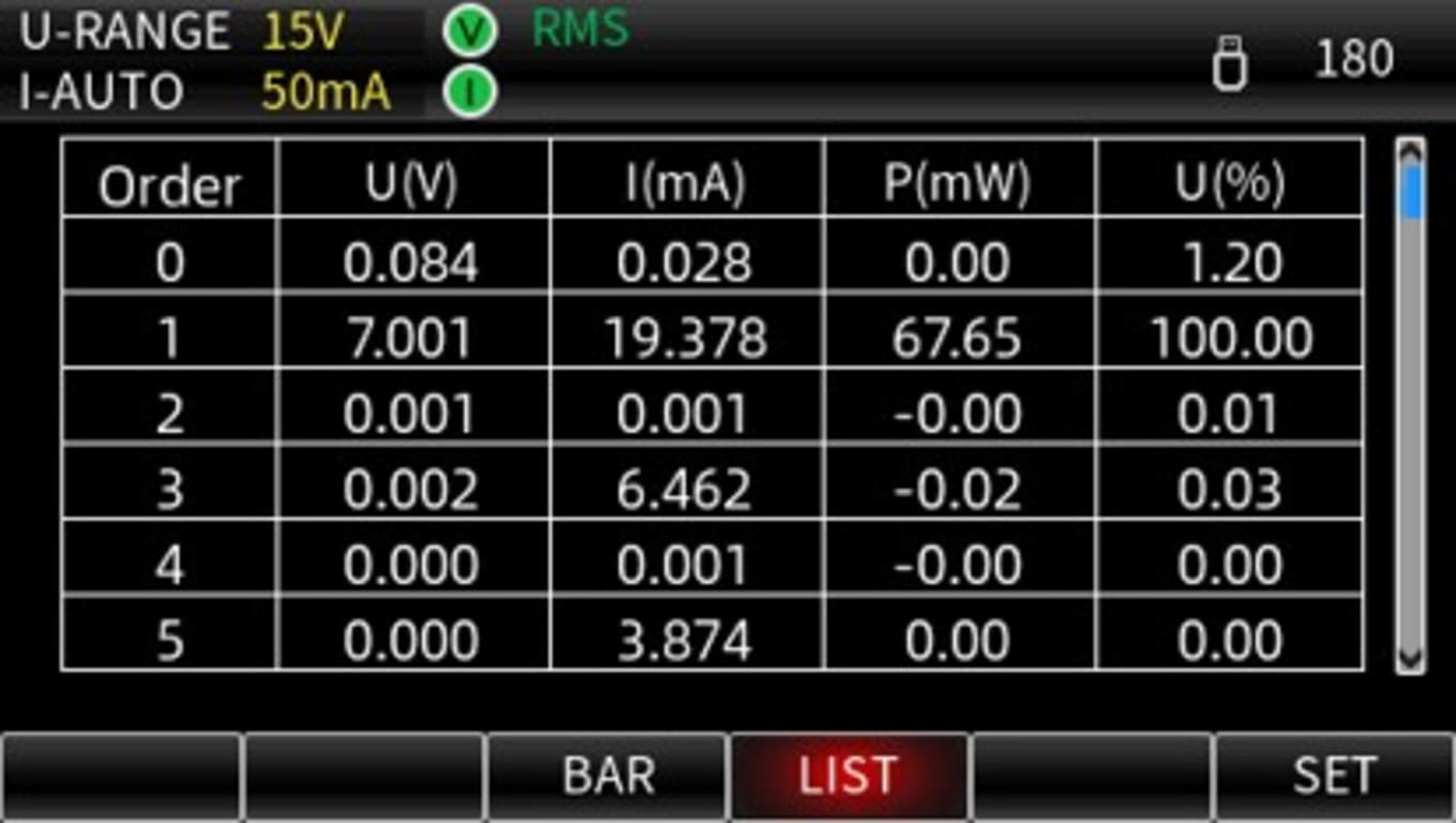 Engineers can analyze up to the 50th harmonic, fully supporting IEC61000-4-7 standards. This is especially useful when analyzing equipment that produces harmonic distortion, such as motors or power converters. The built-in harmonic analysis provides crucial insights into system performance and efficiency.