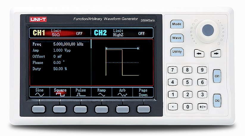 UNI-T UTG900E series function/arbitrary waveform generators use direct digital synthesis to produce accurate and stable waveform output with up to 1µHz resolution. This device is easy to use and ideal for many applications.