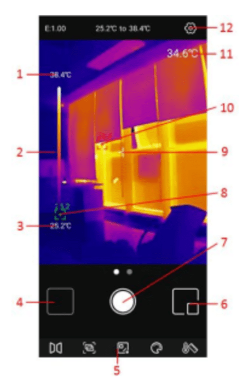After the device is loaded, the initial smartphone page is shown in the figure below. The palette is Ironbow by default, and the main page is divided into the following sections.