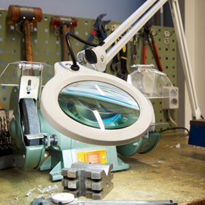 LFM LED is equally well suited for professional use as for use by the visually impaired and others with a need for precise magnification. The light weight makes it easy to move around. LFM LED is easily mounted with a removable table edge clamp.