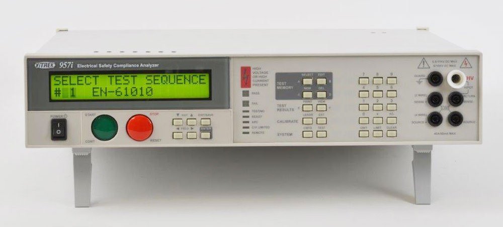Vitrek 95x Series 15KVDC 6KVAC/IR/LR Electrical Safety Compliance Analyzer. Comes with: TL-209, Power Cord, Operating Manual, QTPro II-950 45 day free trial, NIST Traceable Calibration Certificate without data. ISO 17025 accredited calibration certificate with data and uncertainties available with purchase at a reduced price with part number: ISO-CALN-95X.