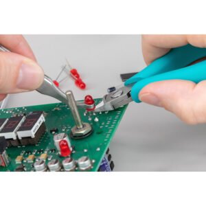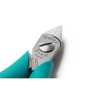 This Weller 2422EB cutter is manufactured from high-grade tool steel. The cutting edges are hardened to Rockwell 64–65 HRC. The precision cutters have a non-reflecting surface that is ESD-safe and resharpenable. The narrow head with a relieved lower section allows for easy access even to hard-to-reach areas.