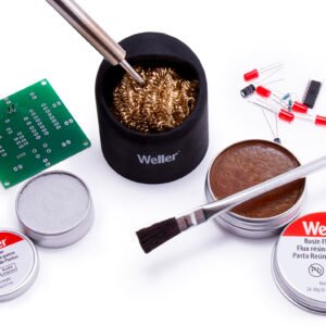 Clean and remove residual solder from your soldering iron tips without water with Weller’s Soldering Brass Tip Cleaner with Silicone Holder. Simply plunge the iron tip into brass coils that clean, prevent rust and extend tip life. Increase tool safety and stability with the slip-resistant silicone holder.