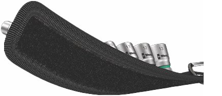 Wera Tools 05003883001 typically Wera designed robust textile belt with 9 sockets taking up minimal space. A smooth turning Twist to Unlock mechanism ensures a secure fit and simple removal of the sockets. Comes with “Take it easy” Tool Finder with colour coding according to size to enable the right tool to be selected easily and quickly. Includes a snap hook for secure fastening to a belt loop or pocket. Supplied with a nonwoven reverse side and hook and loop strips for simple attachment e.g. to a wall, shelf, tool trolley and to the Wera 2go tool transport system.