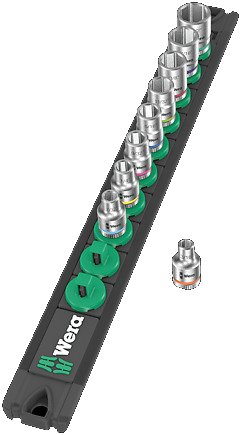 Wera Tools 05005420001 – Magnetic Socket Rail A Imperial Zyklop Socket Set, 1/4″ Drive, 9pcs