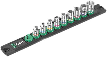 The Wera 05005420001 is a top-quality 9-piece socket set that is designed to meet the needs of professionals and DIY enthusiasts alike. This Imperial socket set comes complete with a handy socket rail that makes organizing and storing your sockets a breeze. The sockets are 1/4″ in size and are perfect for manual and power tool operations that do not involve impact.