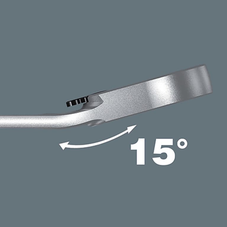 The limit stop on this wrench prevents any slipping, ensuring that you can work with confidence and precision. The very fine toothing and robust locking element provide smooth and reliable operation, while the ratchet end is angled by 15°, allowing for easier access to tight spaces.