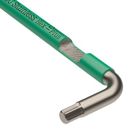 We questioned the classic L-key design, since all too often the screw head recess is rounded out, meaning screws can no longer be tightened or loosened – and so the user finds the L-key slipping out of the recess. Wera Hex-Plus tools have a larger contact surface in the screw head. The notching effects are reduced and thereby the deformation of the screws. At the same time, as much as 20 % more torque can be applied.
