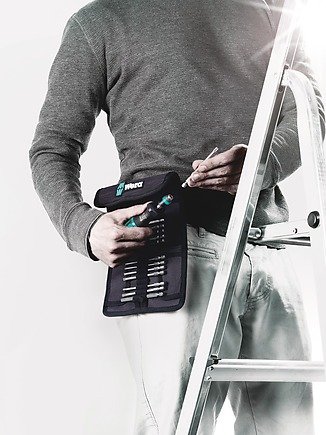 workplace location as well as at external sites. Just as frequently, it is only on-site that a decision is taken as to whether to work manually or with a power tool. The Kraftform Kompakt tool sets equip the user for both types of operation with just a single set. Additionally, the sets are kept in belt pouches or plastic cases. This keeps them secure and clean and means that they are clearly arranged for easy tool selection, something that is very practical when they are to be used or transported.
