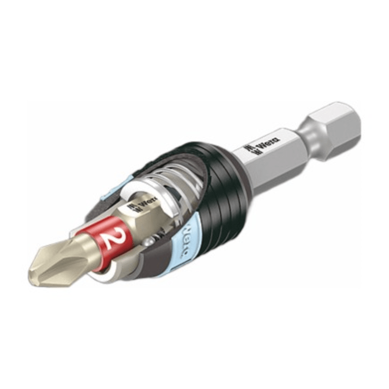 The bit can be pushed into the adaptor without moving the sleeve. The lock is activated automatically as soon as the bit is applied to the screw. Bits are held securely and wobble-free