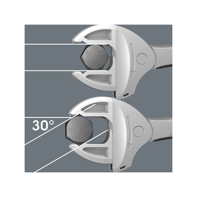 Many users wish to have a universal screwdriving tool with the widest possible range of applications. It should be a single tool for multiple metric and imperial dimensions. It should automatically adjust to the different screw sizes. It should be safe to grab without damaging anything and should allow for high working speeds. With its continuous and parallel jaws the Joker 6004 replaces several single spanner sizes. The required size is automatically and continuously set when attaching the tool to the hexagon bolt or screw. The integrated lever mechanism securely clamps the hexagon screw or bolt between the jaws, which significantly reduces the risk of slippage or damage. The ratchet feature ensures fast and consistent screwdriving without removing the tool. By using the corner-width rectangular prisms, a back-pivoting angle of only 30-degree can be achieved. The single-arm design, in conjunction with the ratchet feature and the corner-width prism, makes it possible to work even in confined spaces. The adjustable Joker 6004 is the universal screwdriving tool. Self-setting. Gripping. Spanning.