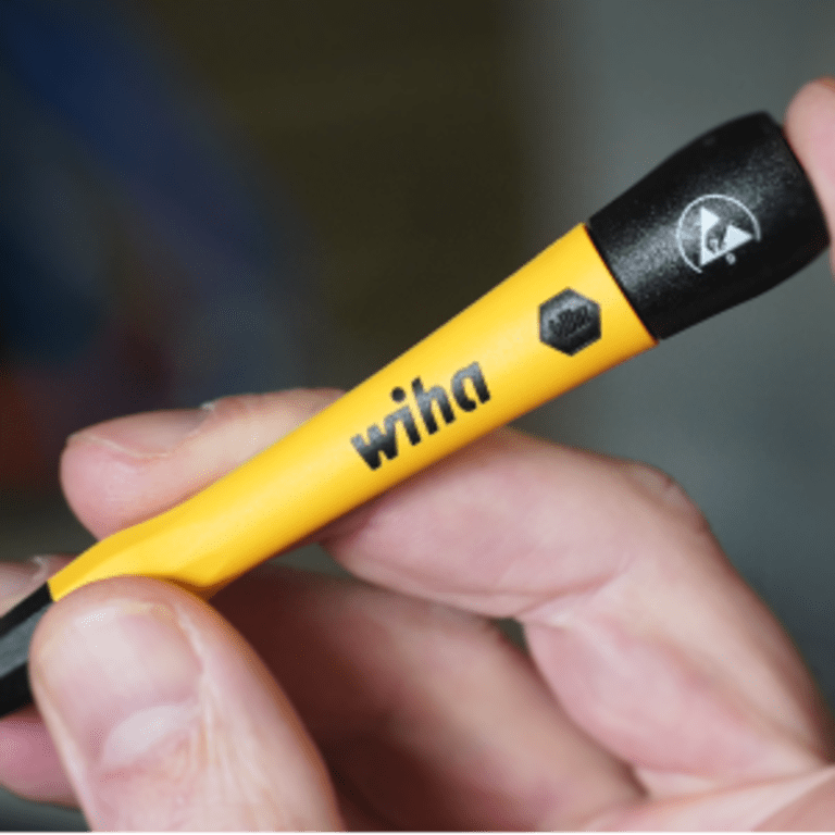 Wiha ESD safe precision tools meet ESD Standard IEC 61340-5-1 for protecting electronic devices from electrostatic discharge and have a handle surface resistance of 106 – 109 Ohms for balanced electrostatic dissipation.