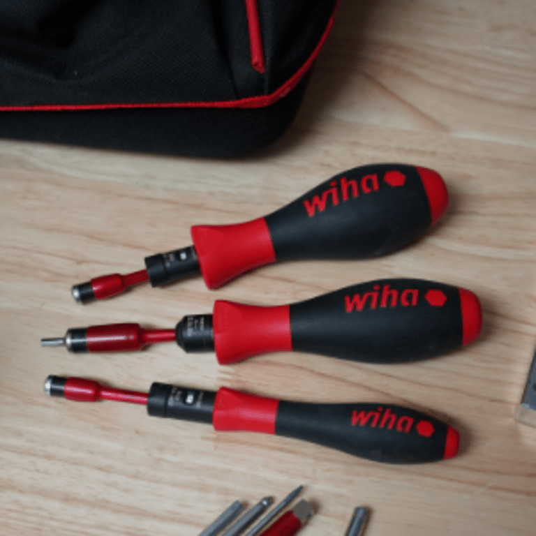 Wiha SoftFinish TorqueVario screwdrivers have variable torque settings that can be adjusted in increments using an adjustment tool. The torque display scale shows the exact torque setting. When turning the driver will emit an audible click once the torque setting has been attained and automatically resets for the next torque cycle. The TorqueVario handles are designed to work with Wiha Torque Control Blades. There are bit and socket adapters that allow for using the torque driver in a variety of applications.