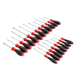 Wiha SoftFinish Driver Handles are the standard for professional quality. Featuring an 8-edged large-diameter comfort grip, SoftFinish puts maximum surface area in the palm of your hand for powerful torque and less fatigue. Each handle is sized proportionately to its driver blade profile for an optimal turn-force application. Constructed of direct-molded dual durometer materials the SoftFinish driver handle stands up to the heavy everyday use of professionals. Wiha screwdrivers consist of premium-quality tool steel engineered for performance in high-demand environments pros see every day. Each driver blade is precisely heat-treated delivering years of service life, and the driver tips are precision machined for an exact fit, nearly eliminating the potential for fastener head cam-out.