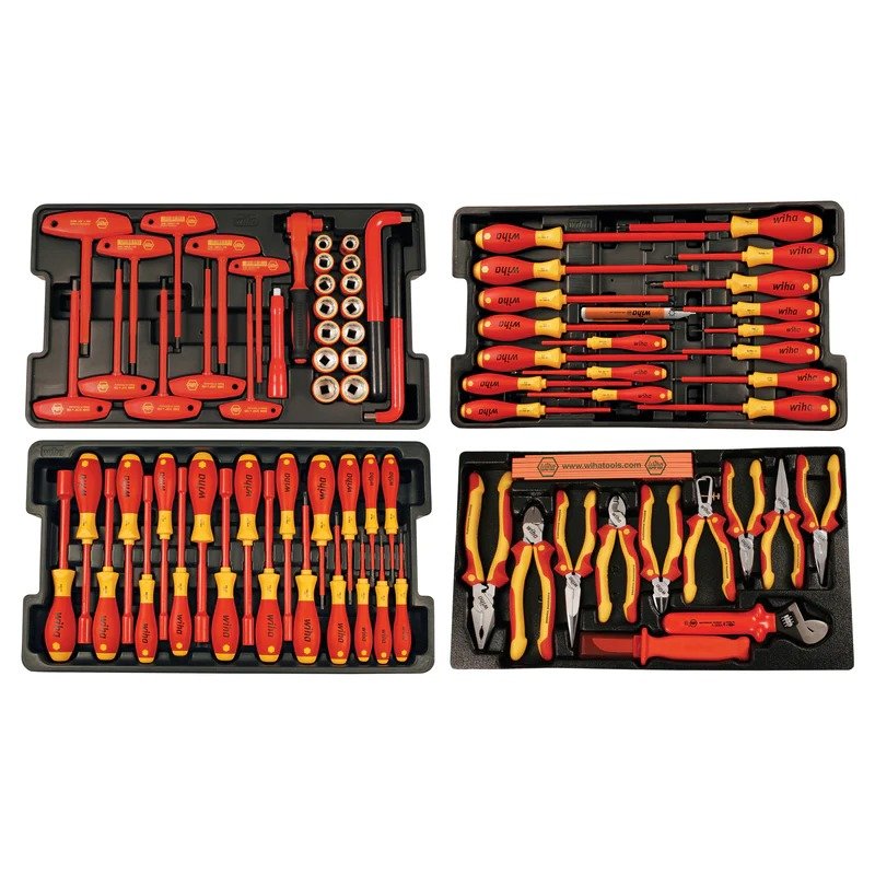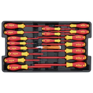 The Wiha tools are stored in removable insert trays, keeping the tools organized and secure during transport. This case will make transporting tools from each job site much easier and faster. The case is equipped with a large storage space which offers ample space for more equipment to be carried. Every single Wiha insulated tool is individually tested to 10,000 volts AC and rated to 1,000 volts AC (1,500 volts DC) for safety and peace of mind in energized applications. Wiha Insulated tools are VDE Certified and meet EN/IEC 60900 testing standards for protection against arc flash explosion, ASTM F1505 standard specifications for insulated and insulating hand tools, NFPA-70E standards for electrical safety on the job site, and CSA testing benchmarks for safety and performance.