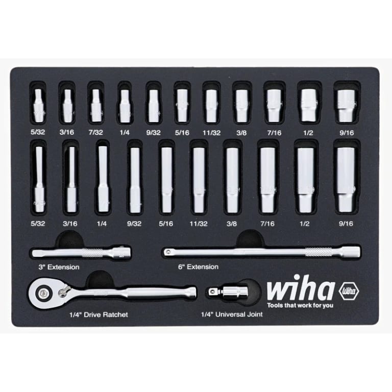 Wiha 33396 – 25 Piece 1/4” Drive Professional Standard and Deep Socket Tray Set – SAE