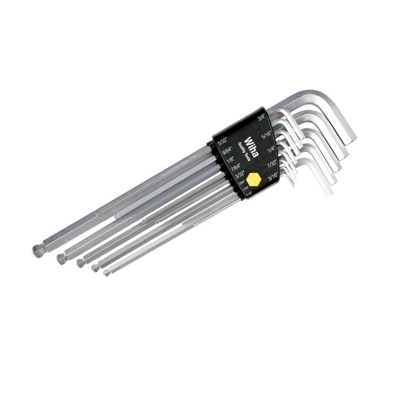 The Wiha 36998 is a 13-piece ball end long arm hex L-key set in imperial system (inch) with a durable hard chrome finish. It is made up of Wiha exclusive chrome-V-moly super tool steel. It has the best wear resistance and less distortion at high torque. It is hardened for maximum durability.