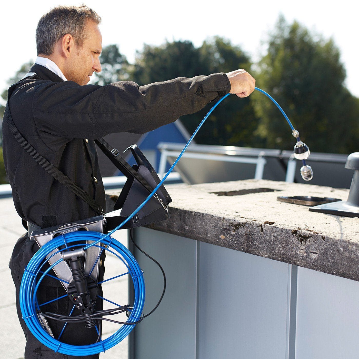 To be able to assess and specifically target repair work, we at Wohler have perfected the technique of precisely locating the camera head. The distance and the position of the head are displayed on the monitor. The top and bottom of the pipe are displayed on the monitor at all times, even if the camera is being guided up or down or if it is moving left or right. It is even possible to locate the 1 1/2″ dia color camera head wirelessly – utilizing the new Wohler L 200 Locator.