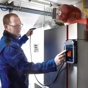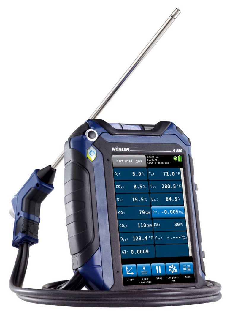 As robust as cast iron, but as easy to operate as a smartphone – that’s what Wohler’s new flue gas analyzer feels like in your hand. Appropriately, the advantages are equally substantial: A tip with your finger on the Wohler A 550 is all that is required to perform analyses, inspections, and settings on residential and commercial appliances. The flue gas analyzer is equipped with coded connections for the 4 Pa test and even »NEW AND UNIQUE« a wood moisture content measurement function to VDI Guideline 4206 (VDI = Association of German Engineers).