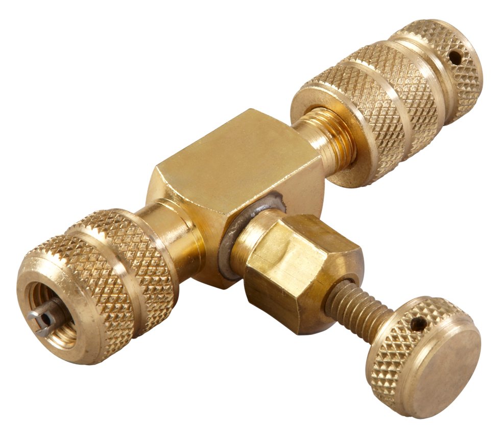 1/4″ vacuum/charge valve without side port. For faster vacuum/charging or removing/replacing Schrader cores.